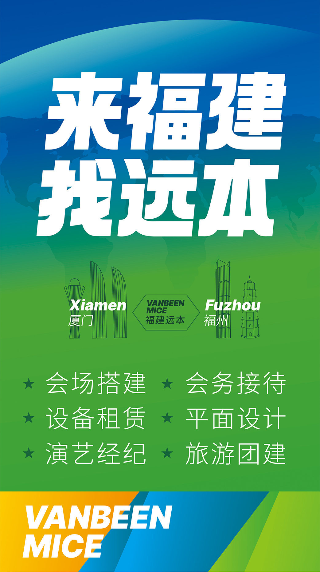廈門遠(yuǎn)本成立于2013年,是一家集策劃設(shè)計、落地搭建以及會議接待等全案服務(wù)的DMC公司。公司擁有LED屏幕、燈光音響、木作工廠等專業(yè)舞美設(shè)備,擁有一批專業(yè)穩(wěn)定的策劃設(shè)計和會務(wù)接待團(tuán)隊(duì),能夠快速、精準(zhǔn)地為客戶提供優(yōu)質(zhì)的策劃、設(shè)計、搭建、接待等服務(wù)。公司已服務(wù)過華為、阿里、麥當(dāng)勞、中國移動、埃克森美孚、興業(yè)銀行、招商銀行、華潤三九、齊魯制藥、萬邦制藥等國內(nèi)外知名企業(yè),并成功入選中國國旅、中旅、康輝國旅、錦江國旅、中智商展、墨馬傳媒等國內(nèi)知名PCO公司供應(yīng)商庫。